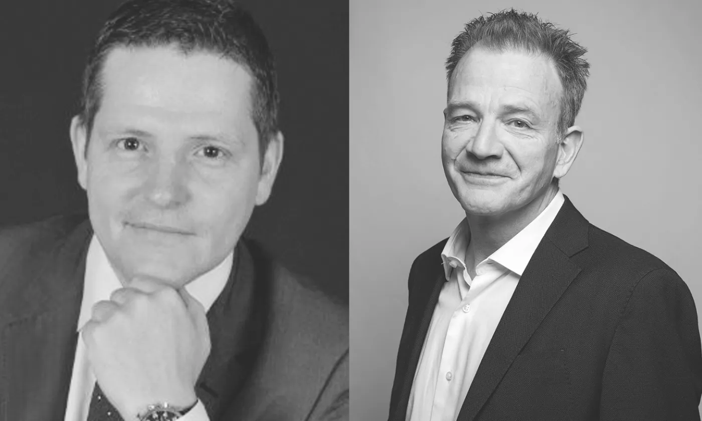 A gauche, Jean-Marc Rickli, responsable des risques globaux et émergents au GCSP, et à droite, Frank Mathwig, responsable de théologie et d'éthique pour l'EERS.