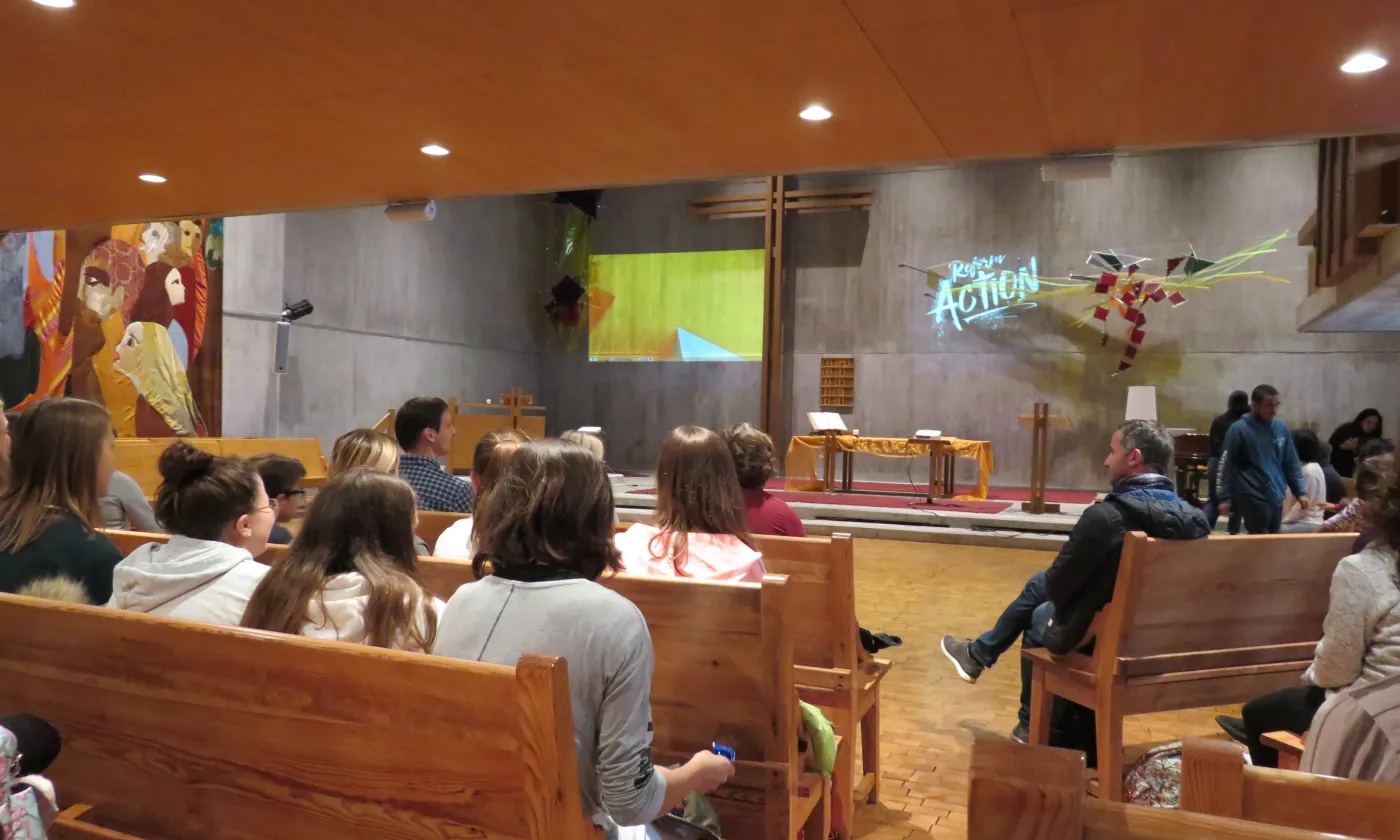 Rapidement, les festivaliers accompagnés par les jacks et leurs pasteurs rejoignent différentes églises en ville alors qu’une grande partie se dirige vers la cathédrale Saint-Pierre où une cérémonie de la communauté de Taizé les attend. Sous la houlette du prieur, frère Aloïs, la célébration se déroule dans une ambiance assez intimiste malgré la foule.