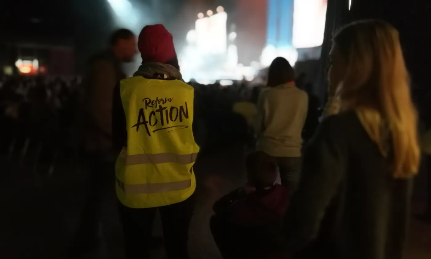Vendredi soir, 3 novembre, plus de 4700 jeunes âgés de 14 à 18 ans débarquent en gare de Genève. L’équipe de bénévoles et les employés des CFF qui encadrent leur arrivée ont été bien briefés.  Les groupes sont rapidement dirigés vers différents points de sortie dans une ambiance résolument festive. Ils vont participer tout le week-end à Reform’Action, une importante manifestation organisée par la Fédération des Eglises protestantes de Suisse (FEPS), l'Eglise protestante de Genève (EPG) et des organisations évangéliques. Au menu : célébrations, ateliers, discussions, mais aussi concerts et performances. Reform’Action se pense comme un véritable festival à l’offre riche et variée: «Je suis venue pour célébrer les 500 ans de la Réforme et pour faire la fête!», lance une catéchumène en posant le pied sur le quai de la gare. Pour assurer la bonne tenue de la manifestation, l’organisation a mis les bouchées doubles: il a fallu loger les milliers de festivaliers sur 39 sites d’hébergement différents. Pour orienter et encadrer les participants, Reform’Action a pu compter sur pas moins de 660 bénévoles dont la moitié sont issus des Eglises libres et évangéliques. La grande majorité des inscriptions au festival provient des paroisses qui y envoient leurs catéchumènes. Constantin Bacha, pasteur à la paroisse de Neuchâtel le confirme: «L’Eglise réformée évangélique du Canton de Neuchâtel (EREN) a voulu que les catéchumènes viennent en nombre. C’est la première fois que la FEPS organise une manifestation de ce genre et c’est assez extraordinaire. Nous avons répondu présent.»